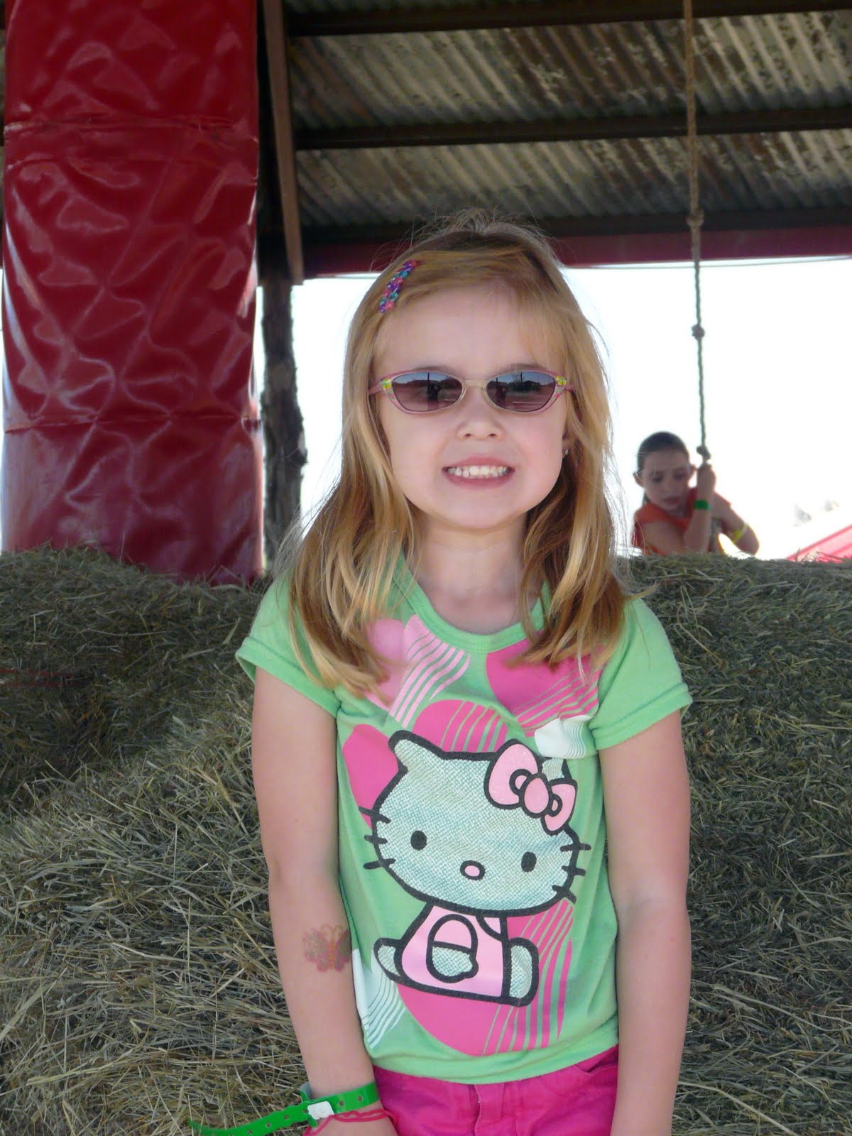 Cassidy thought it was great that she could hold onto a rope and swing. (Although she wasn't really interested in jumping in the hay).
